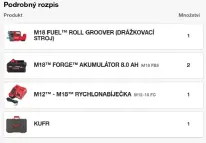 Akumulátorová drážkovačka M18FRGRO114-802C nabízí bezuhlíkový motor, napájení 18 V a kapacitu baterie 8,0 Ah, což umožňuje efektivní práci bez nutnosti kabelu. Součástí balení jsou dvě baterie, nabíječka a kufr pro snadné přenášení.