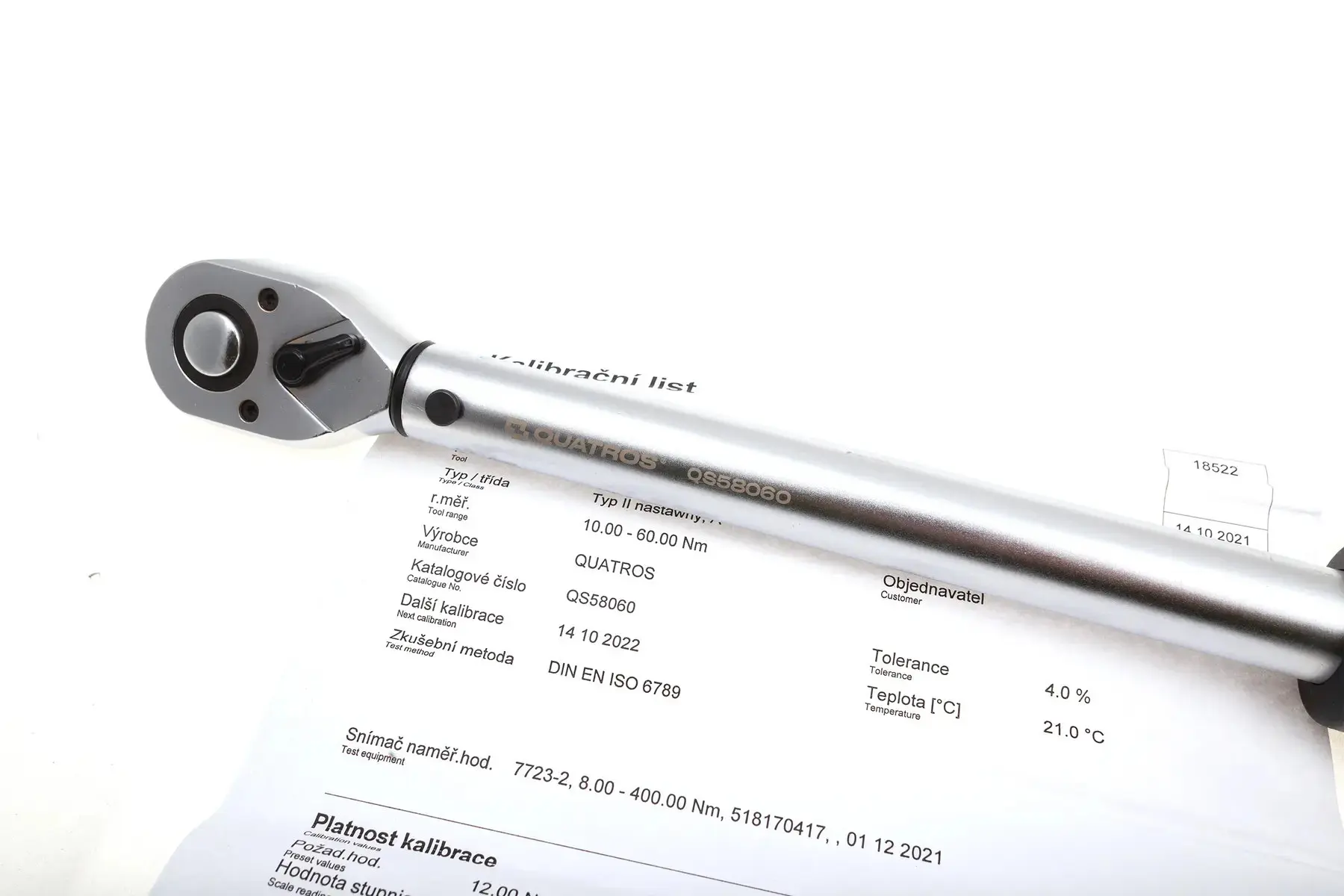 Dodáváno s kalibračním certifikátem. Každý klíč je zvlášť vyzkoušen a certifikován dle normy ISO 6789, protokol v češtině je dodáván v balení
