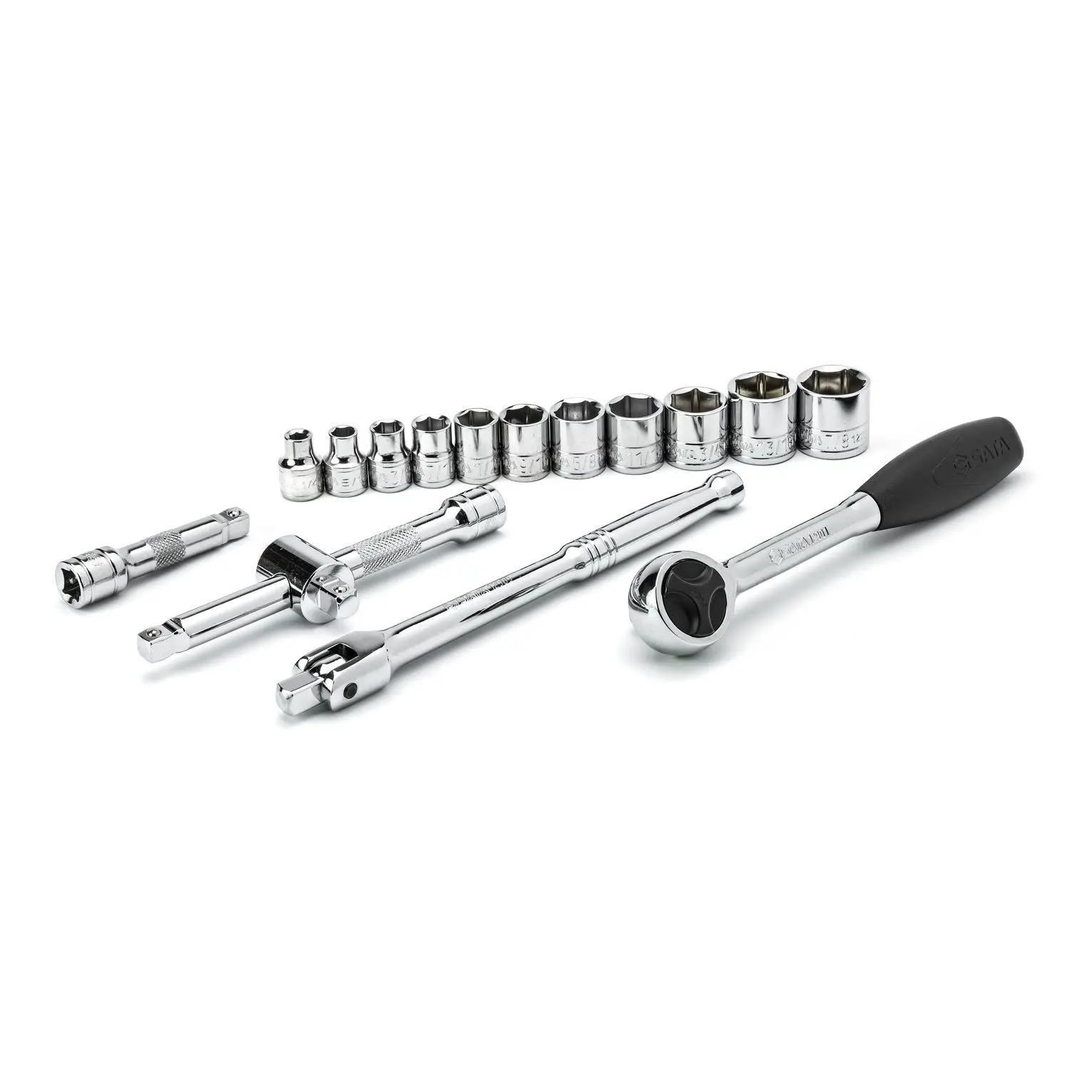Tato sada obsahuje 16 nástrčných hlavic s pohonem 3/8", které jsou určeny pro práci s šestihrannými spoji. Hlavice jsou vyrobeny z odolného materiálu, což zajišťuje dlouhou životnost při běžném používání v dílně i domácnosti. Díky standardizovanému pohonu 3/8" je možné je kombinovat s běžně dostupným nářadím.