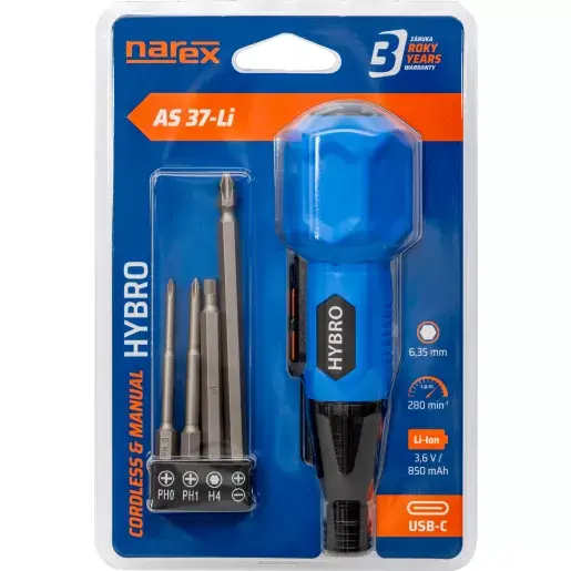 Aku hybridní šroubovák Narex AS 37-Li HYBRO (0,85 Ah) (NA65405670)