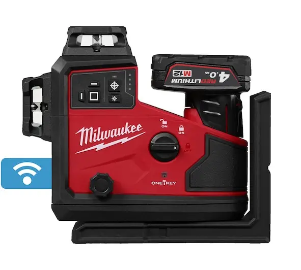 Aku zelený laser Milwaukee M12 A3PLO-401C promítá tři 360° roviny, nabízí ONE-KEY propojení, napájení z akumulátoru M12 B4 a je dodáván v kufru.