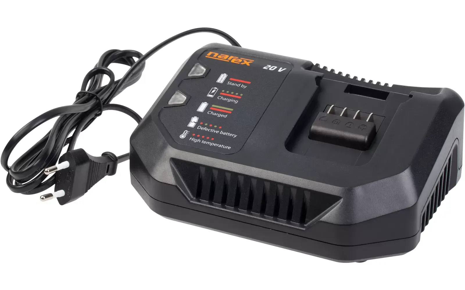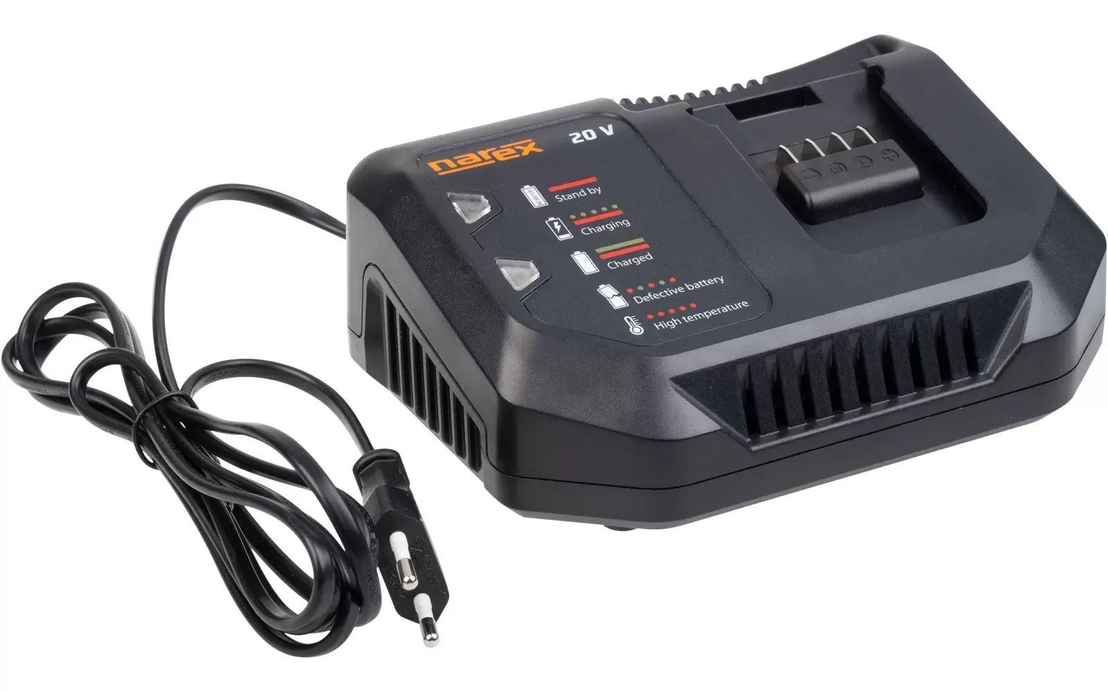 Akumulátorová nabíječka Narex AN 201. Vhodná pro nabíjení aku nářadí pro řadu Narex Camouflage. Slot 20 V. Zdroj energie: zásuvka 230-240V.