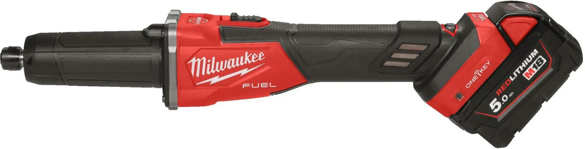 Kvalitní akumulátorová přímá bruska výrobce Milwaukee s označením M18 FDGROVB-502X, pro stopkové nástroje (řezání a broušení), rozměry upínání 6 i 8 mm, 5-stupňuvá regulace otáček 8.000 - 20.000 ot/min, balení bez akumulátoru a nabíječky. Hmotnost s