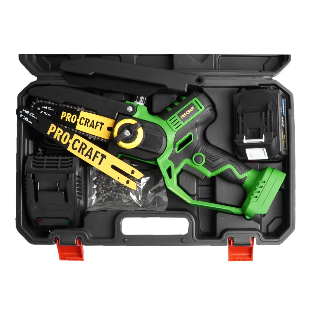 Aku ruční pilka Procraft PKA32Li je výkonná a kompaktní pila určená pro přesné řezání dřeva, větví a drobných konstrukcí. Díky bezuhlíkovému motoru, automatickému systému mazání a snadnému napínání řetězu bez použití nářadí je ideální volbou pro profesionální i domácí využití.