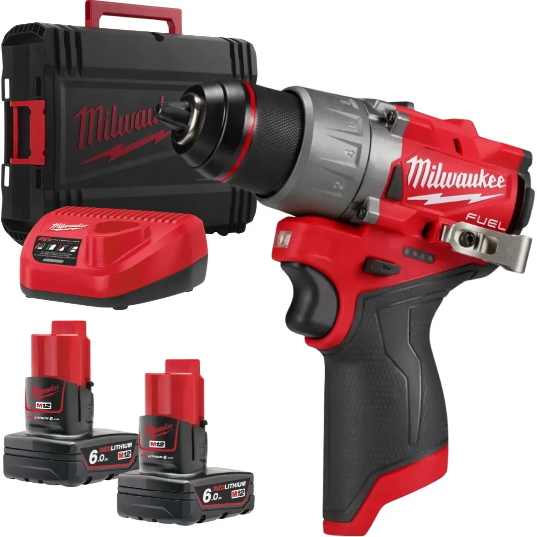 Aku kompaktní vrtací šroubovák Milwaukee M12 FDD2-602X, 2x aku M12 B6 + C12 C + kufr, 4933479875