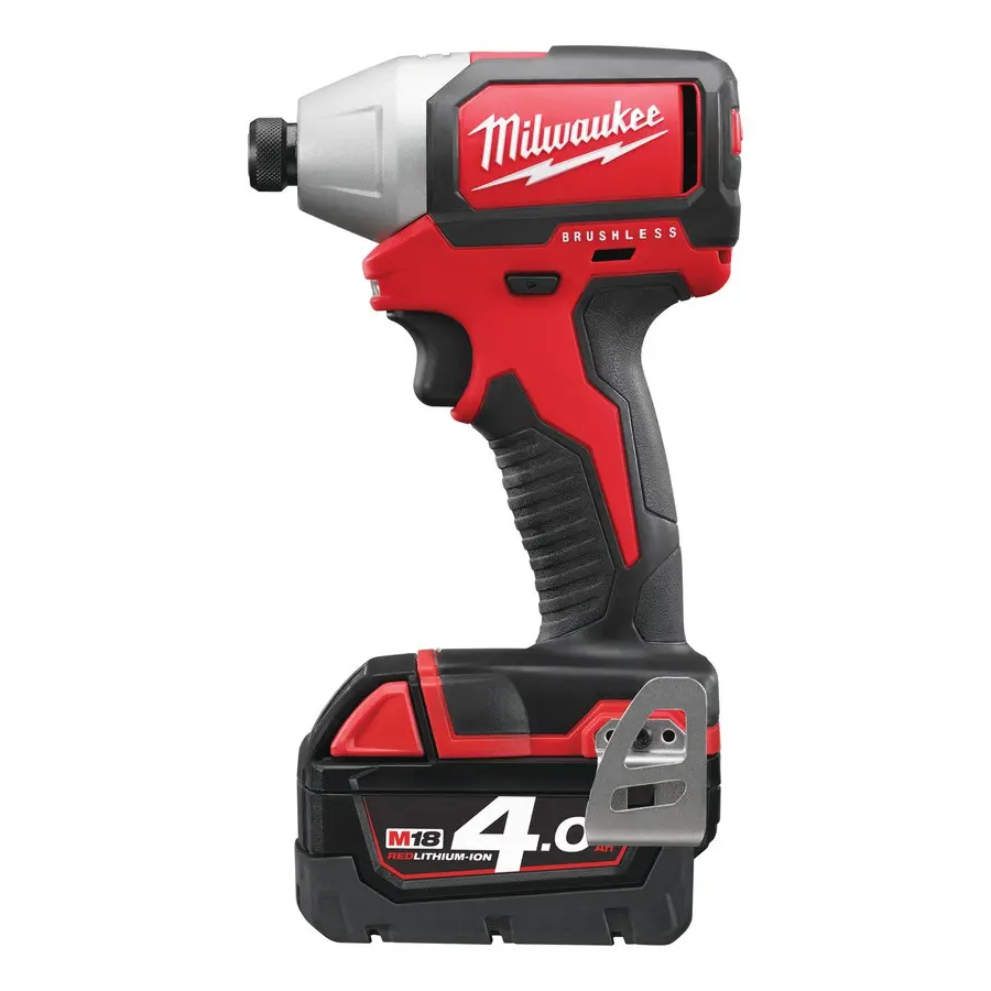 Akumulátorový rázový šroubovák Milwaukee M18 BLID-502C, 2x akumulátor M18 B5 (18V / 5,0 Ah), aku nabíječka M12-18 FC a s kufrem.