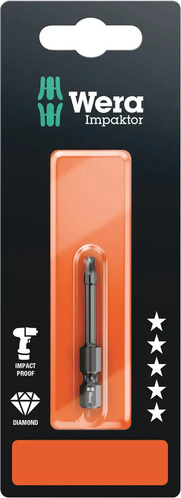 Kvalitní bity na šrouby s vnitřním čtyřhranem. Technologie Impaktor zajišťuje nadprůměrnou životnost i při extrémních požadavcích. Vyšší třecí odpor díky hrubé vrstvě diamantových částic na špičce bitu zabraňuje vyklouznutí ze šroubu. Zvlášť vhodné pro použití s běžnými impaktními/rázovými utahováky. Šestihran 1/4", vhodný pro držáky podle DIN ISO 1173-F 6,3.
