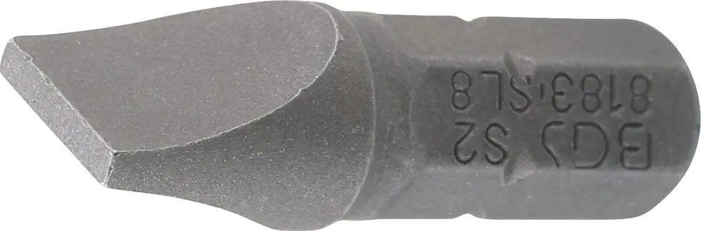 Bit s délkou 25 mm a drážkou SL 8 mm je určen pro šroubování pomocí plochého šroubováku. Díky standardizovanému pohonu 6,3 mm (1/4") je kompatibilní s běžnými držáky bitů, aku šroubováky i ručními šroubováky, což zajišťuje široké možnosti využití v dílně i domácnosti.
