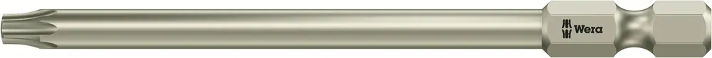 Kvalitní bity z nerezové oceli na šrouby s vnitřním profilem TORX®. Nerezové nářadí Wera se vyrábí z nerezové oceli, čímž se zabraňuje přenosu nevzhledné cizí rzi. Šestihran 1/4", vhodný pro držáky podle DIN ISO 1173-F 6,3.