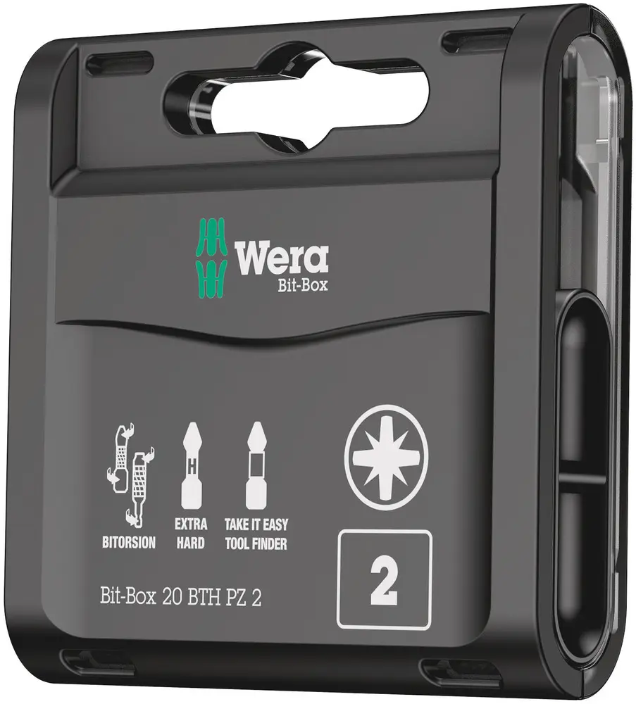 Bity systému BiTorsion na šrouby Pozidriv v praktickém boxu. S elastickou torzní zónou, do které je při zátěžových špičkách odvedena kinetická energie. S měkčí bi-torzní zónou pro zabránění deformace špičky bitu při vysokém zatížení. Díky tomu výrazné prodloužení životnosti produktu. S identifikátorem nářadí "Take it easy": Barevné označení podle profilů a značky velikosti. Velmi tvrdé provedení. Šestihran 1/4", vhodný pro držáky podle DIN ISO 1173-D 6,3. S identifikátorem nářadí "Take it easy": Barevné označení podle profilů a značky velikosti.
