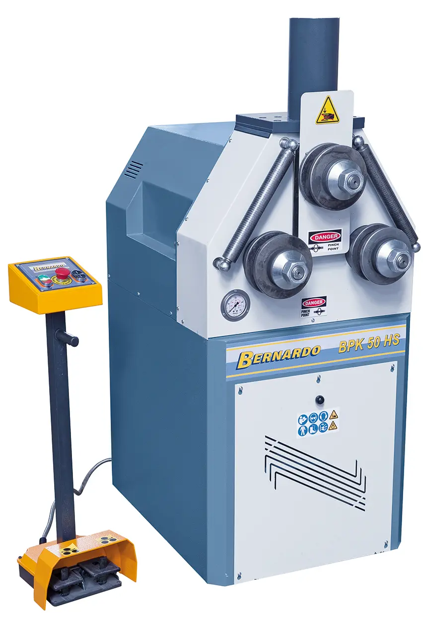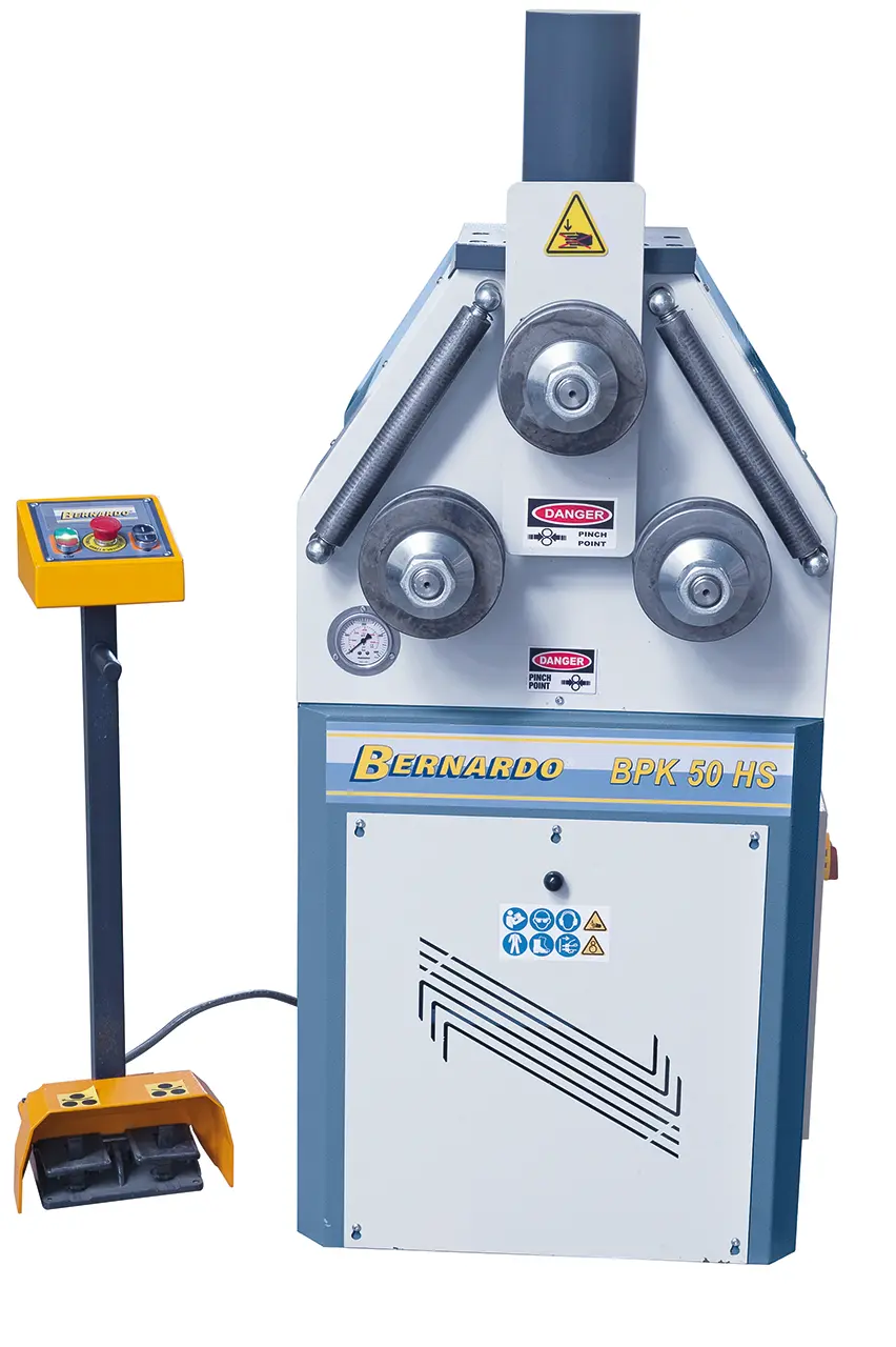 Univerzálně použitelná motorizovaná zakružovačka Bernardo s nožním ovládáním a možností horizontálního i vertikálního zakružování