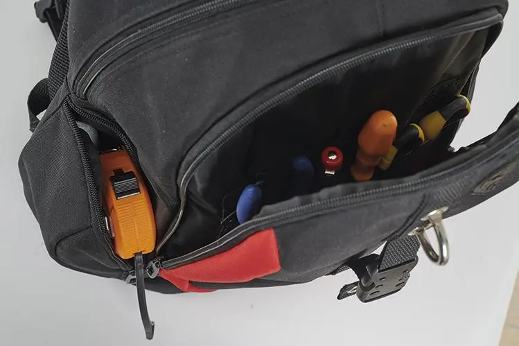 • Vybaven 1 velkou hlavní přihrádkou, 12 zástrčkovými přihrádkami v přední kapse a 2 velkými nasazenými bočními kapsami