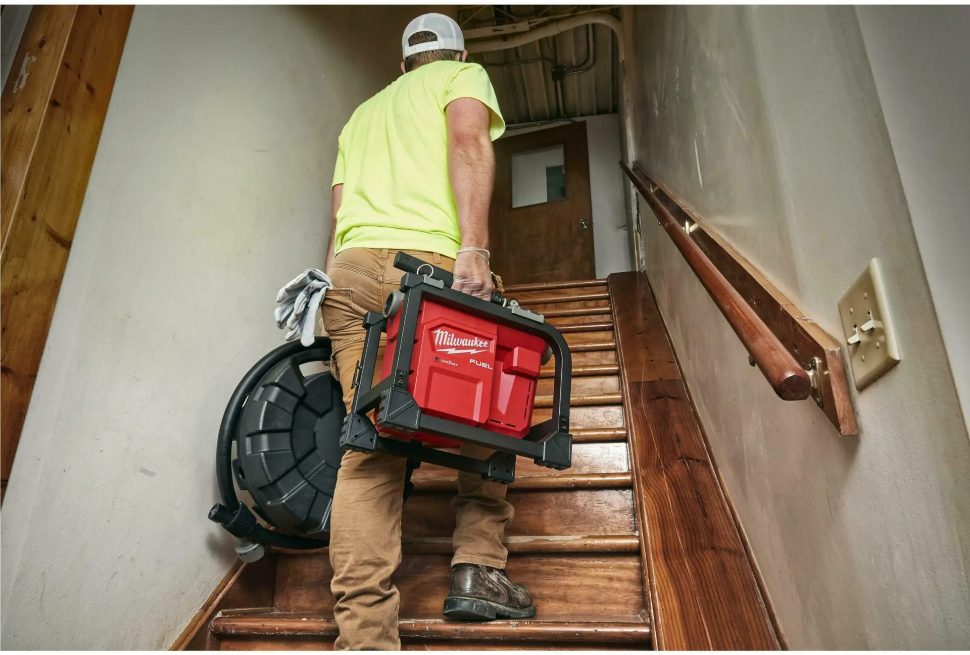 Extrémně nízká hmotnost 14 kg včetně akumulátoru M18 s kapacitou 12,0 Ah umožňuje uživatelům pohodlnou přepravu této kompaktní sekční čističky přes více schodů nebo na delší vzdálenosti