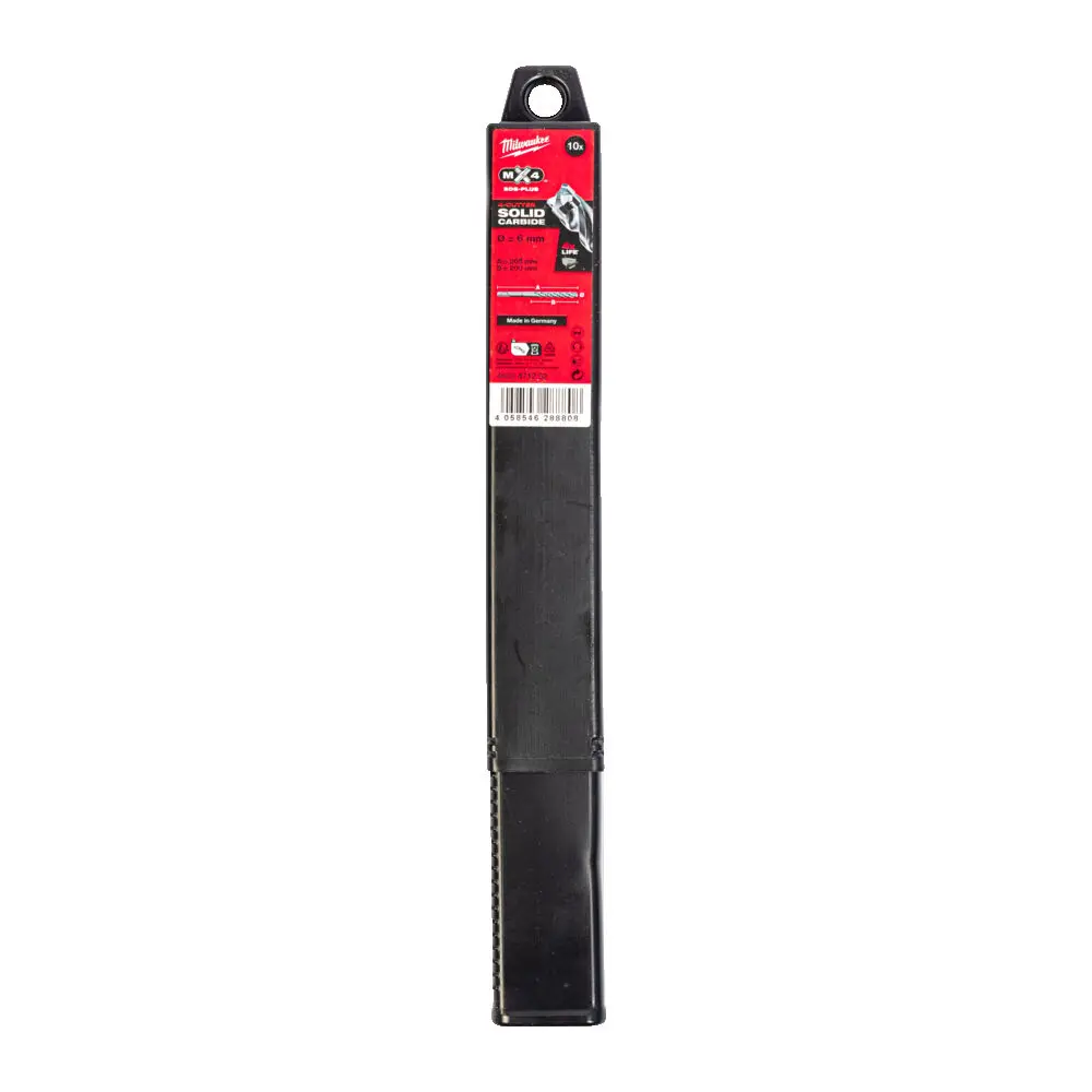 Vrták SDS-Plus MX4 s rozměry 6 x 200 x 265 mm je určen pro vrtání do betonu, zdiva a přírodního kamene. Díky čtyřbřité konstrukci a speciálně navržené geometrii hrotu umožňuje efektivní odvádění prachu a minimalizuje riziko zaseknutí při kontaktu s výztuží.