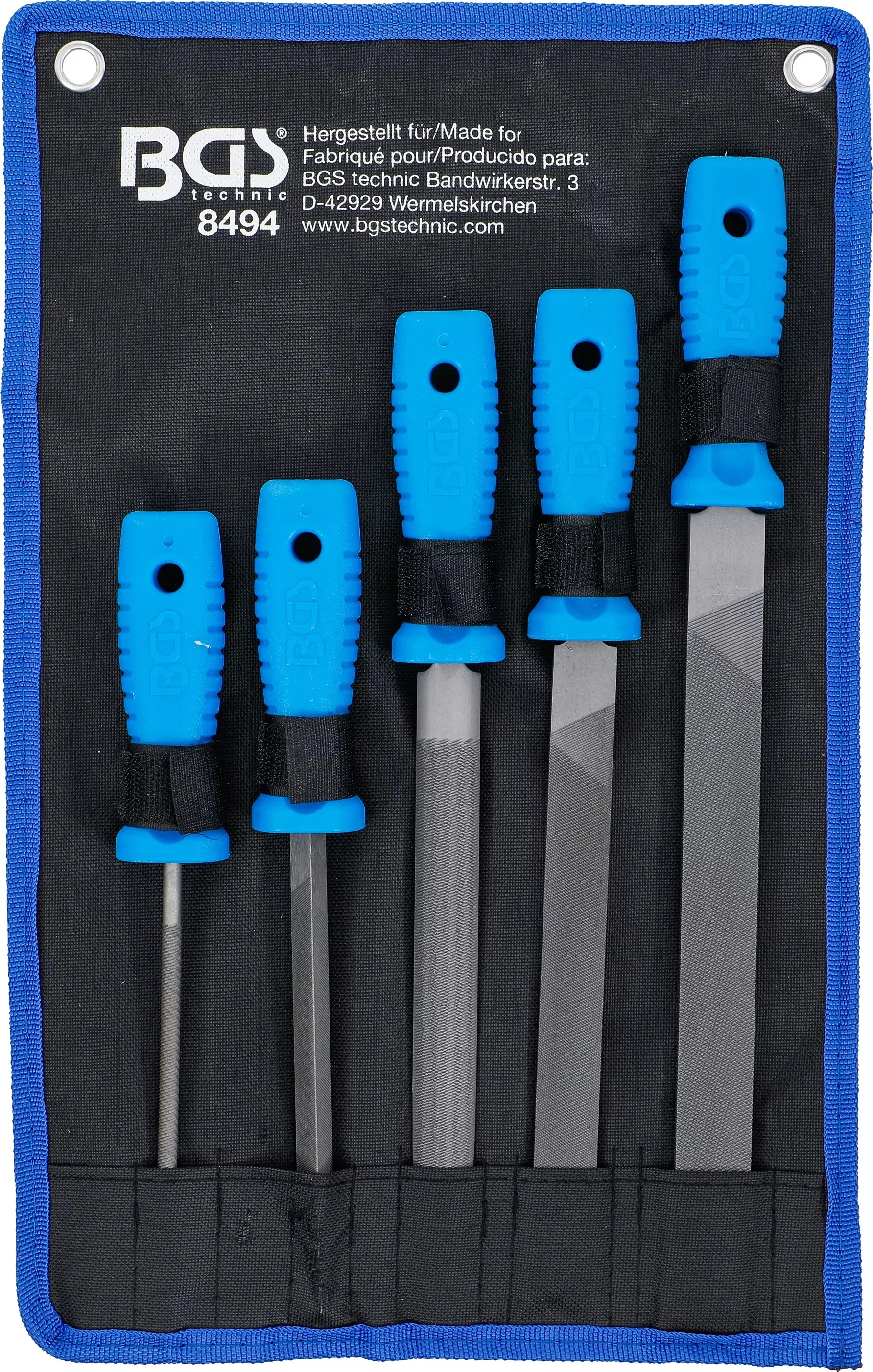 Sada pěti dílenských pilníků BGS108494 v délkách 150 až 250 mm nabízí různé tvary pro opracování kovu, dřeva i plastu. Ergonomické rukojeti zajišťují pevný úchop při práci.