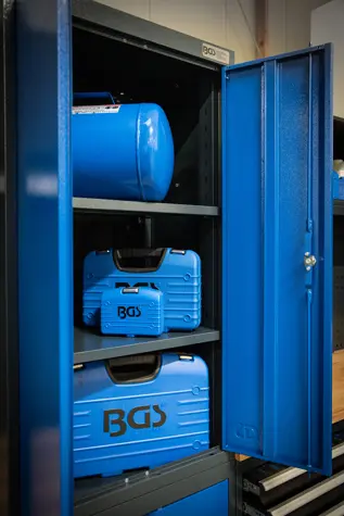 • 1 dílenská skříňka velká dvoukřídlá, se 2 policemi, nosnost do 80 kg