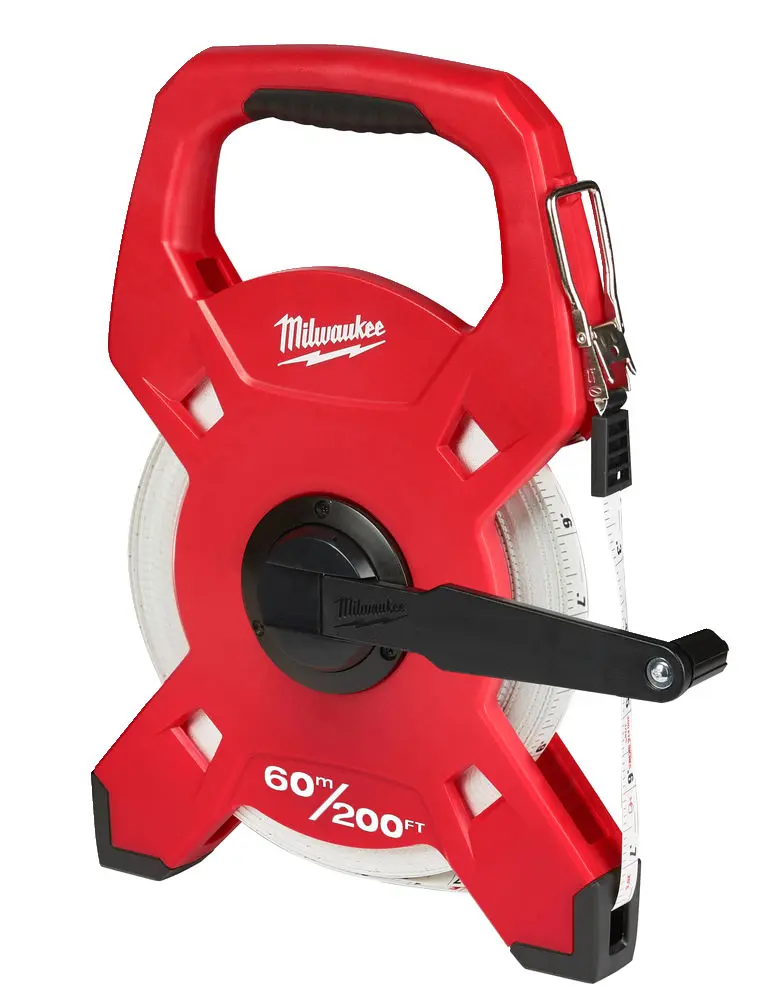 Dlouhé měřící pásmo ze skelných laminátů s délkou 60 metrů (200 stop) je určeno pro přesné měření vzdáleností v exteriéru i interiéru. Díky použití skelných laminátů je pásmo odolné proti vlhkosti, korozi a běžnému opotřebení, což zajišťuje dlouhou životnost i při častém používání v náročných podmínkách.