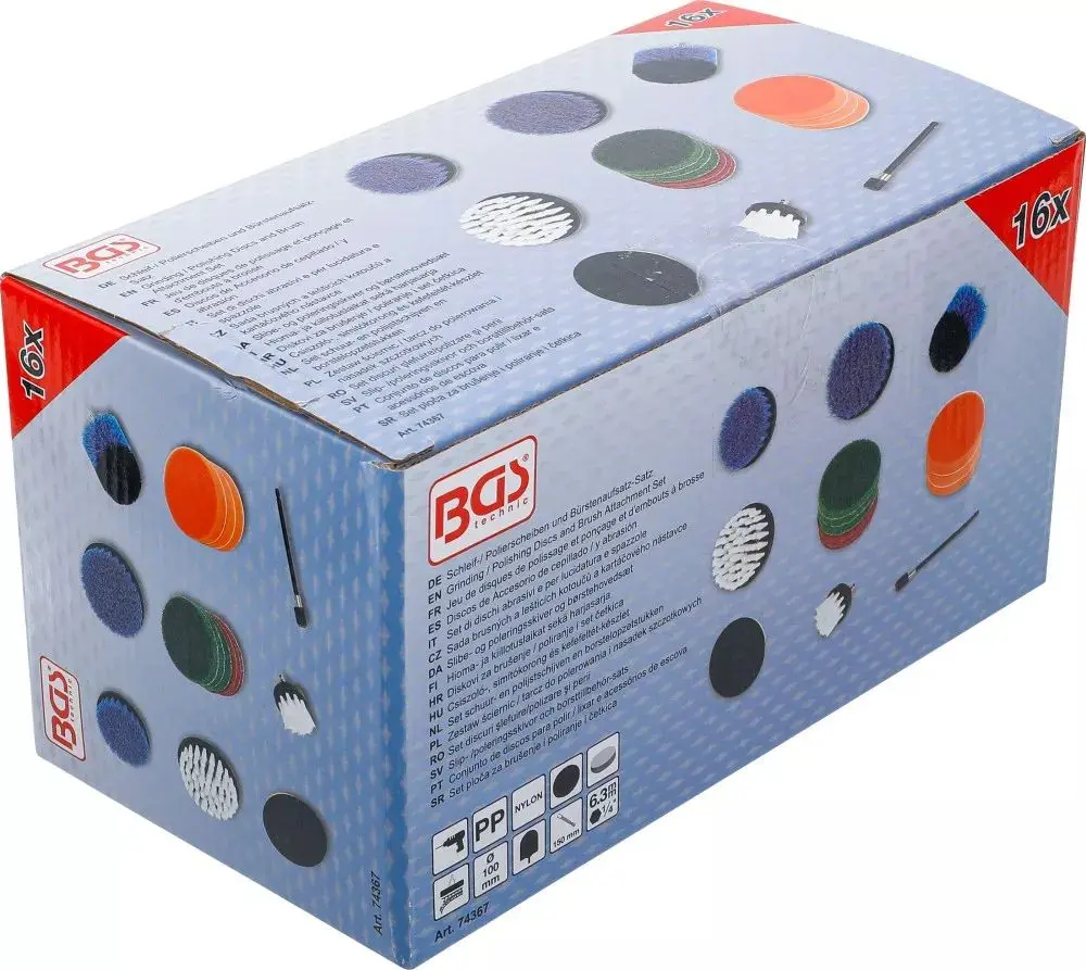 Brusné/lešticí kotoučky BGS1074367 včetně kartáčového nástavce pro vrtačky (Sada 16 dílů) (BGS1074367)