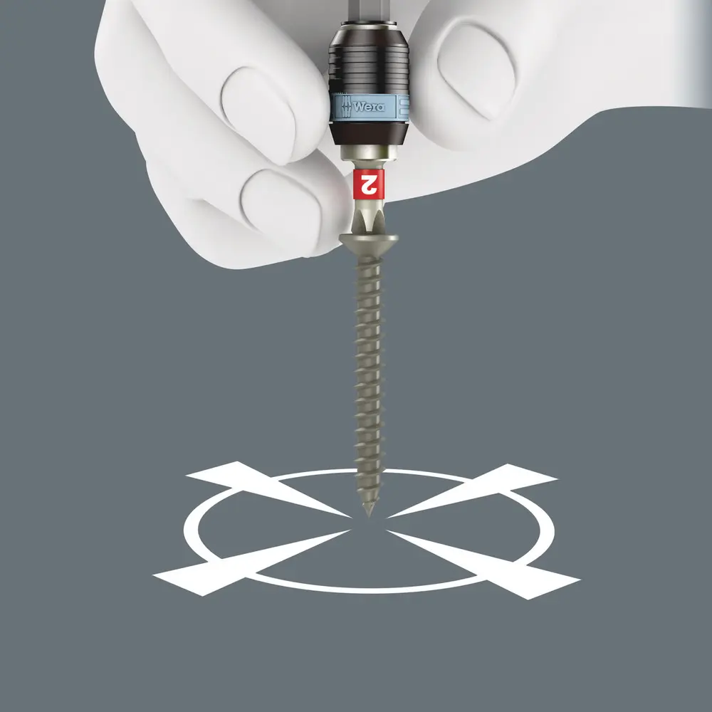 Univerzální držák pro upnutí bitů s připojovacím rozměrem vnějšího šestihranu 1/4" podle DIN ISO 1173-C 6,3 a E 6,3 (ISO 1173). Nerezové provedení pro zabránění cizí rzi. Technologie Rapidaptor umožňuje upnutí bitů i bez manipulace s pouzdrem. Vyjmutí bitu se provádí jednoduchým posunutím směrem dopředu - pro bleskovou výměnu bitů, také jen jednou rukou. Šestihran 1/4", vhodný pro šroubovací zařízení s upnutím podle DIN ISO 1173-F 6,3.