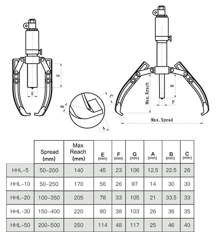 Dvou- nebo tříramenný hydraulický stahovák Genborx HHL-10 (10 t) (OZ8210000000010)