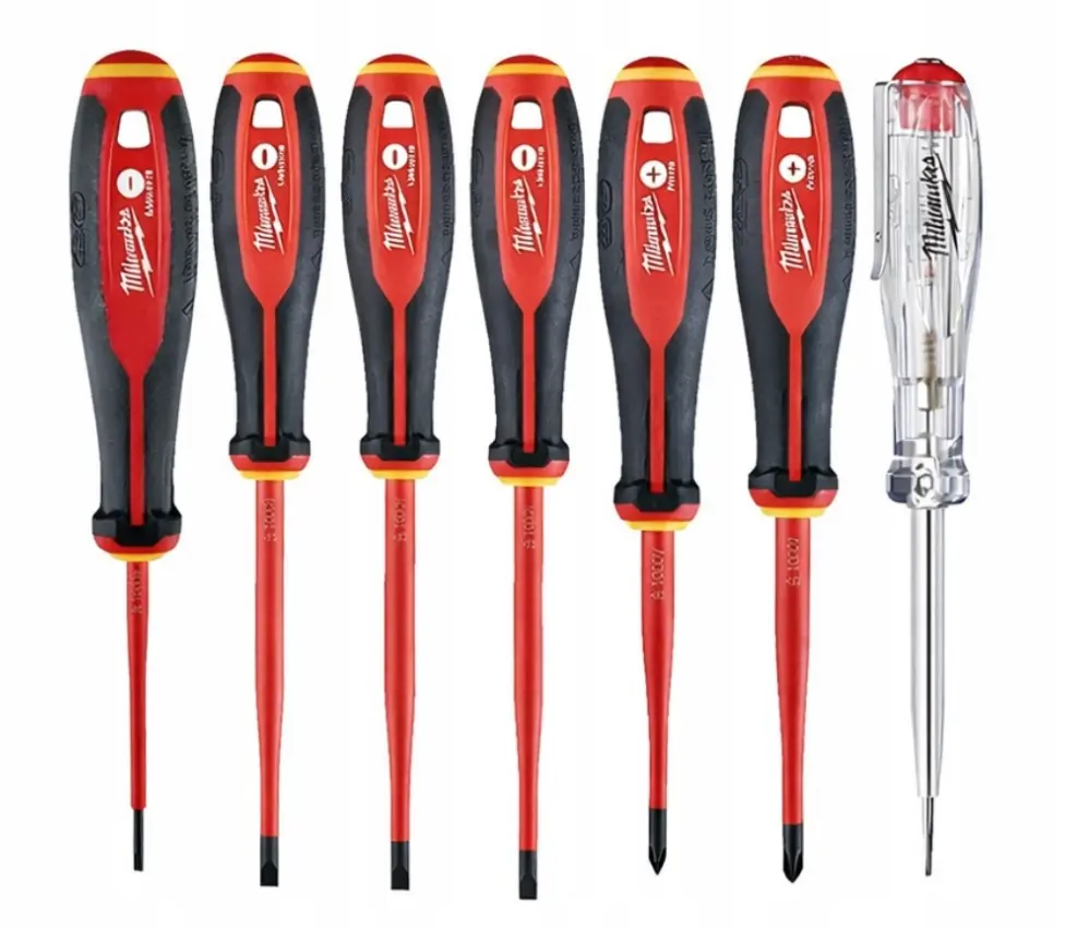 Sada 7 ks kvalitních šroubováků určená především pro elektrikáře od výrobce Milwaukee; VDE (zaručeno 1000V); pohodlná rukojeť Tri-lobe; křížové i ploché: PH, SL; zkoušečka napětí, kulatý dřík se zůženým koncem pro přístup k nížko položeným šroubům.