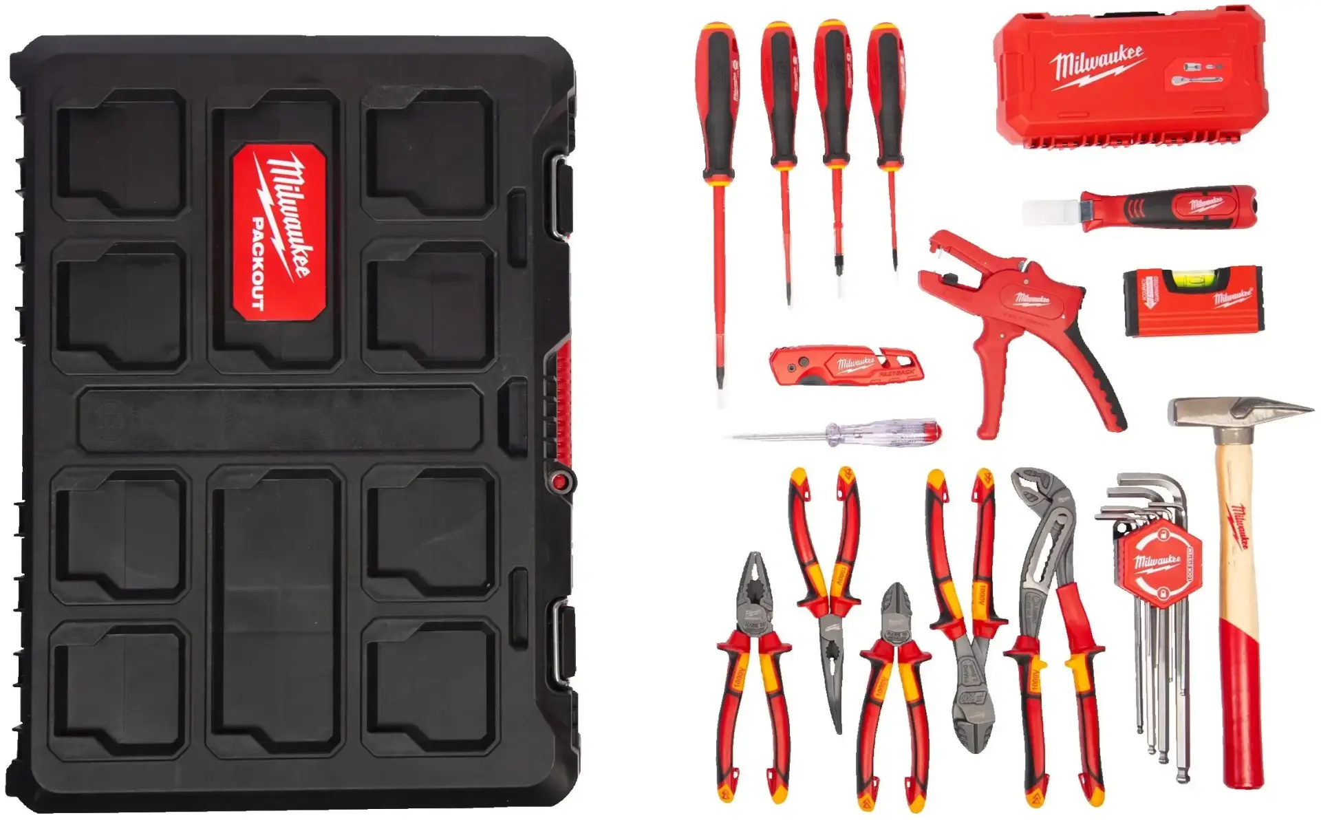 Elektrikářský kufr Milwaukee PACKOUT, sada 62 dílů nářadí pro elektrikáře, 4932499466 (MI4932499466)