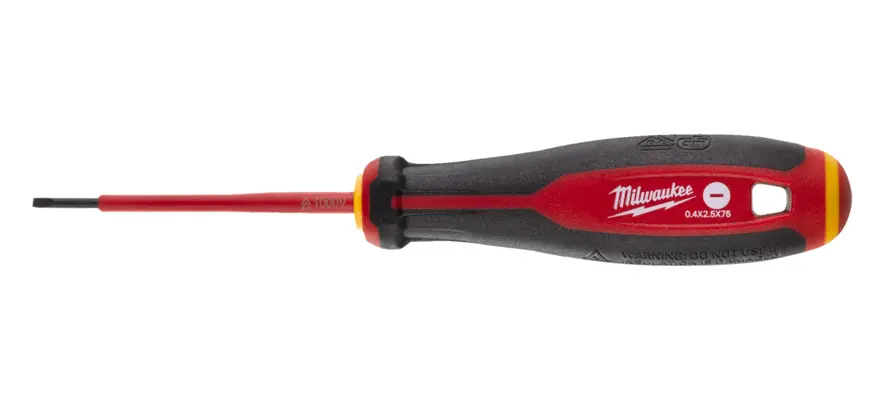 Elektrikářský šroubovák PL 0.4 x 2.5 x 75 Milwaukee VDE slim Tri-Lobe pro práce pod napětím 1000 V (MI4932478712)