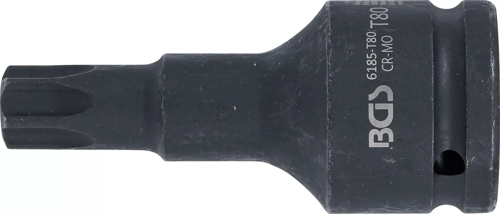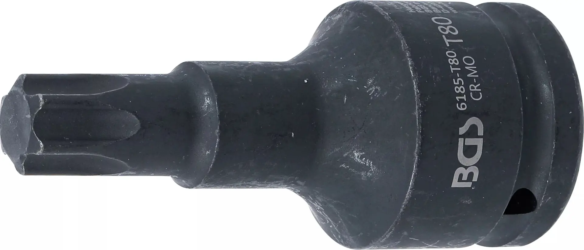 Zástrčná bitová hlavice 3/4" Torx T80 x100 mm BGS106185-T80 je určena pro rázové utahováky, umožňuje efektivní práci s Torx šrouby a má délku 100 mm. Robustní konstrukce zajišťuje dlouhou životnost při náročném použití.