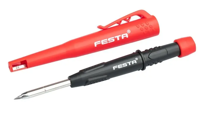 Hloubkový značkovač FESTA 13288.01 s pouzdrem HB umožňuje přesné značení otvorů a hran i na těžko přístupných místech díky tenkému hrotu. Praktické pouzdro chrání značkovač před poškozením a usnadňuje přenášení.