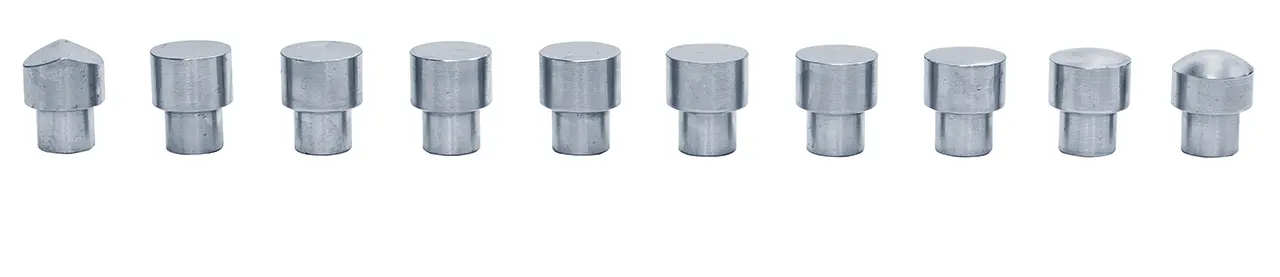 Obsahuje soupravu nástrojů pro roztahování, smršťování a vyhlazování plechu, pro použití - 9 razidel pro tvarování a vyhlazování plechů z oceli, hliníku, mosazi, mědi atd.