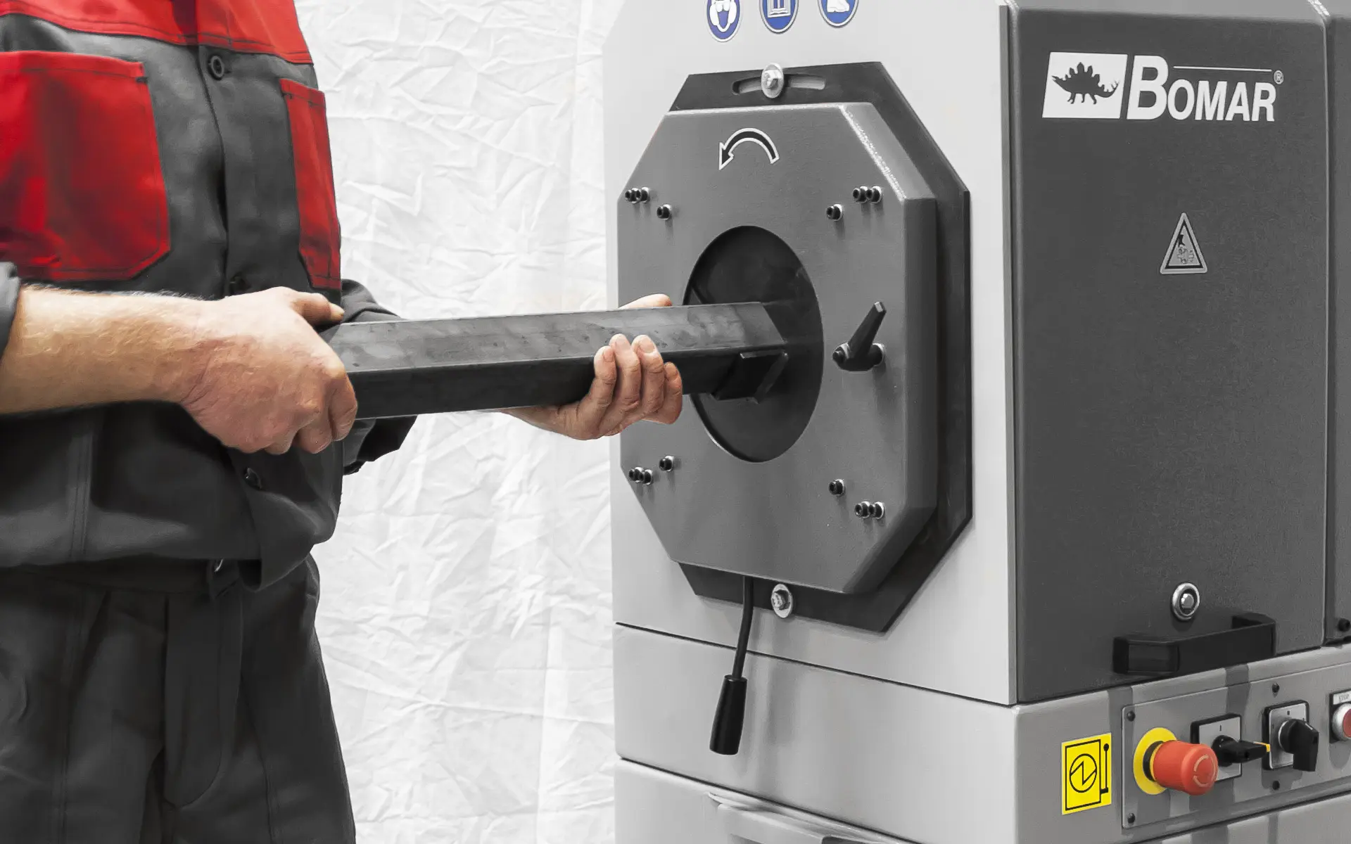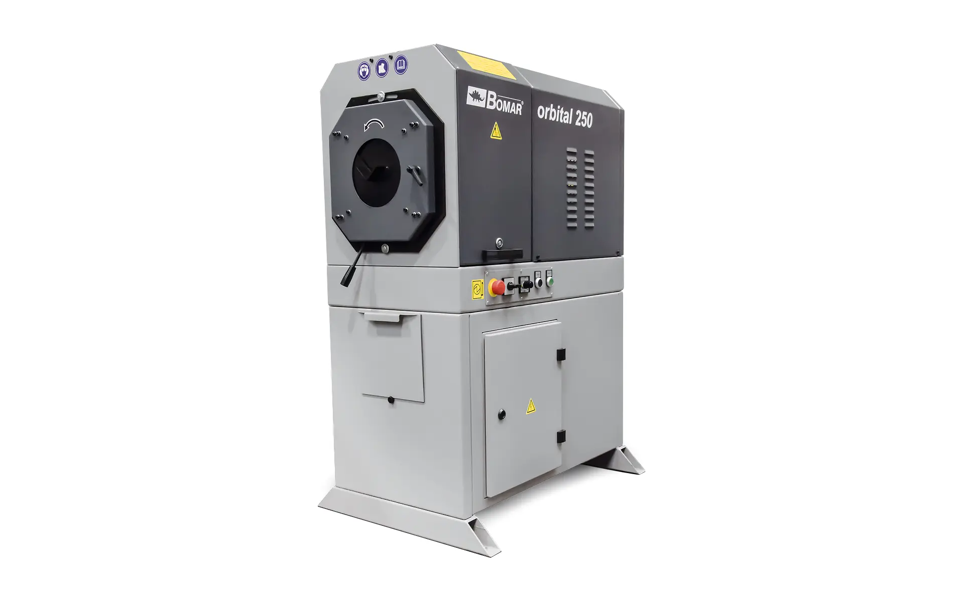 Profesionální odjehlovací stroj Bomar Orbital 250 poskytuje profesionální odstranění otřepů po dělení materiálu.