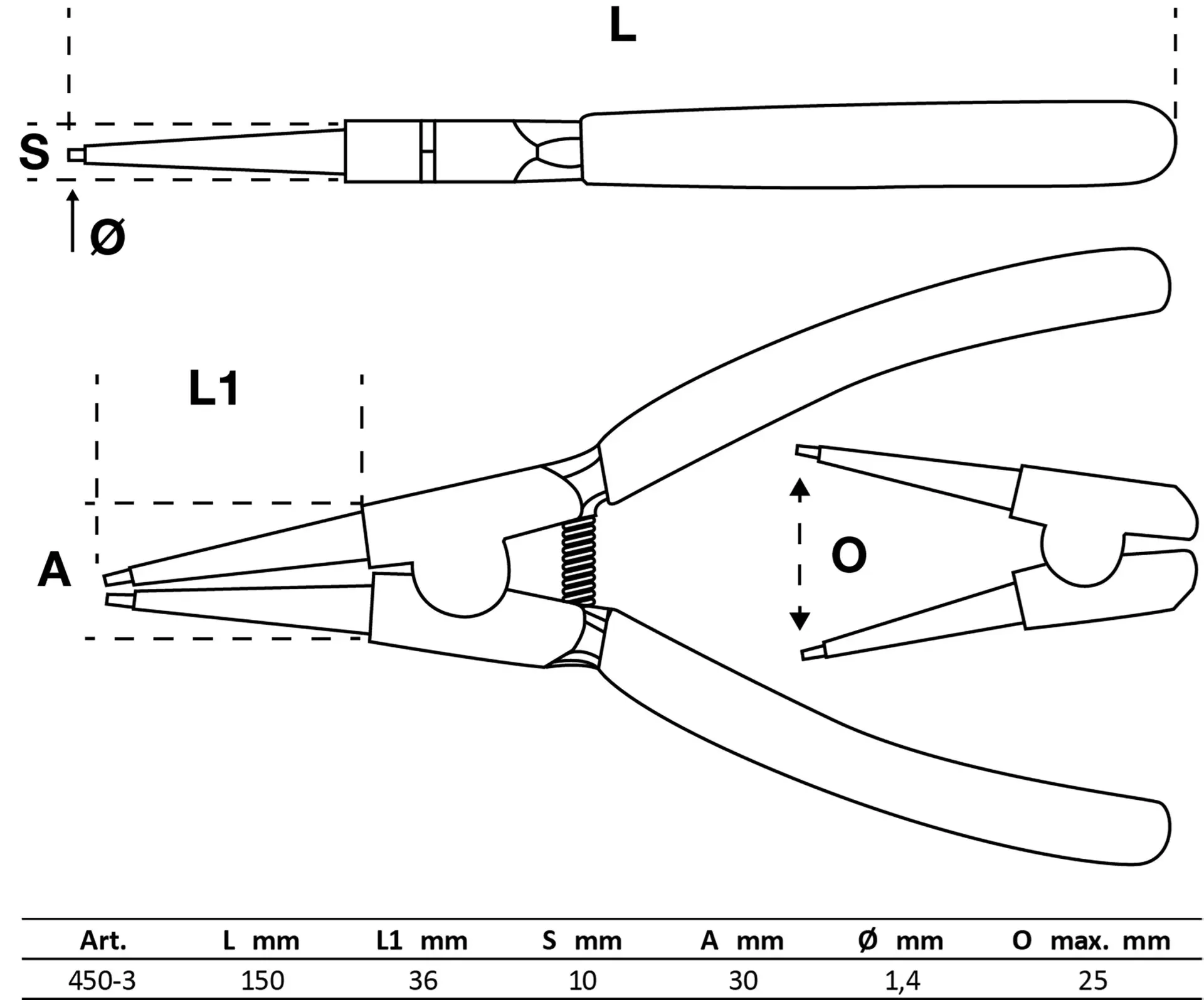 Kleště 150 mm na vnější rozpěrné kroužky BGS100450-3 (BGS100450-3)