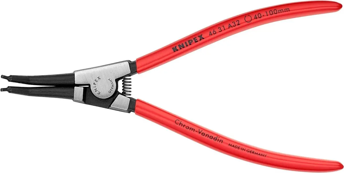 Kleště na pojistné kroužky KNIPEX K 46 31 A32 jsou určeny pro montáž a demontáž vnitřních pojistných kroužků v otvorech. Konstrukce kleští je navržena tak, aby umožnila přesné uchopení a manipulaci s kroužky bez rizika jejich deformace.