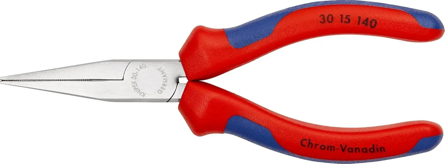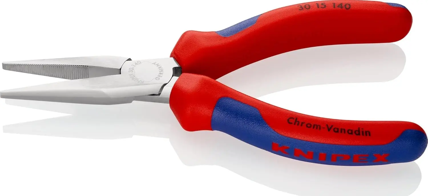 Ploché kleště KNIPEX 30 15 140 s prodlouženými čelistmi umožňují přesné uchopení i v úzkých prostorech, chromovaný povrch chrání před korozí a vícesložkové návleky zajišťují pevný úchop. Délka 140 mm usnadňuje manipulaci při jemných montážních pracíc