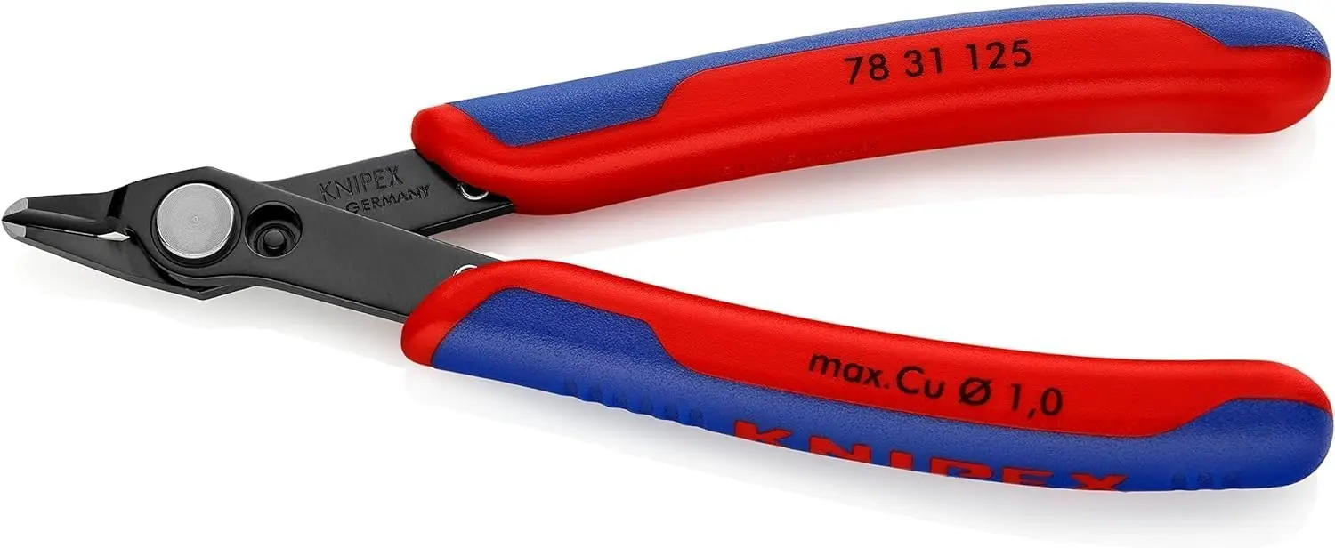 Kleště štípací Electronic Super Knips® 125 mm 78 31 125 jsou určeny pro přesné stříhání měděných drátů, mají délku 125 mm a ergonomické rukojeti. Precizní břity umožňují čistý řez bez deformace vodiče.
