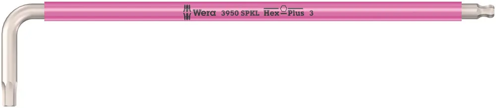 Kvalitní úhlový klíč na šrouby s vnitřním šestihranem z nerezové oceli od firmy Wera. Nerezová ocel zabraňuje přenosu cizí rzi. Profil Hex-Plus umožňuje větší dosedací plochy v hlavě šroubu. Vrubový účinek se tak snižuje minimum, je téměř vyloučeno zničení hlavy šroubu. S šestihranem a kulovou hlavou na dlouhém ramenu: Díky kulovitým profilům lze vychýlit nebo natočit osu nářadí vůči ose šroubu, takže se může šroubovat "za roh". S identifikátorem nářadí "Take it easy": Barevné označení podle velikostí.
