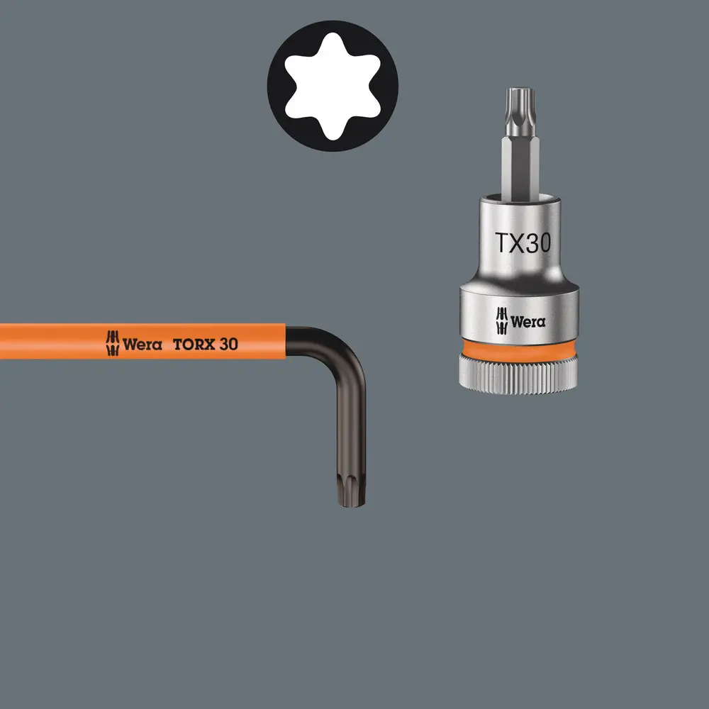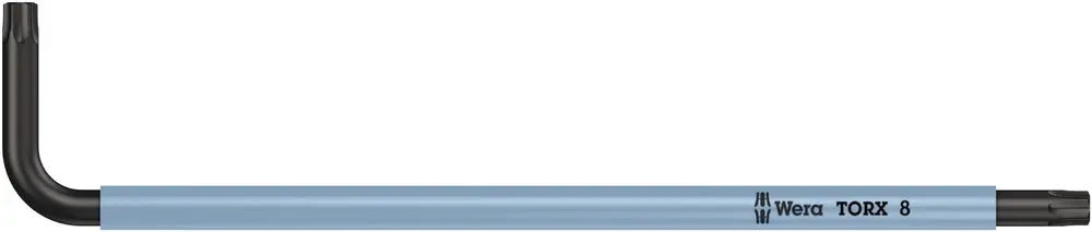 Úhlový klíč Wera s opláštěním bužírkou na ochranu prstů Díky tomu ergonomická a příjemná rukojeť i při nízkých teplotách. Na jedné straně profil TORX® BO: Díra v bitu a čep v šroubu TORX® s dírou zabraňuje nedovolenému povolení. Bezpečnostní šroubování Kulový tvar profilu umožňuje bezpečnou práci i v těžko dosažitelných montážních polohách. Povrchová úprava BlackLaser zajišťuje vynikající ochranu povrchu i proti korozi a dlouhou životnost. Laserem vypálené, a díky tomu trvalé, označení velikosti na úhlovém klíči pro snadné vyhledávání.