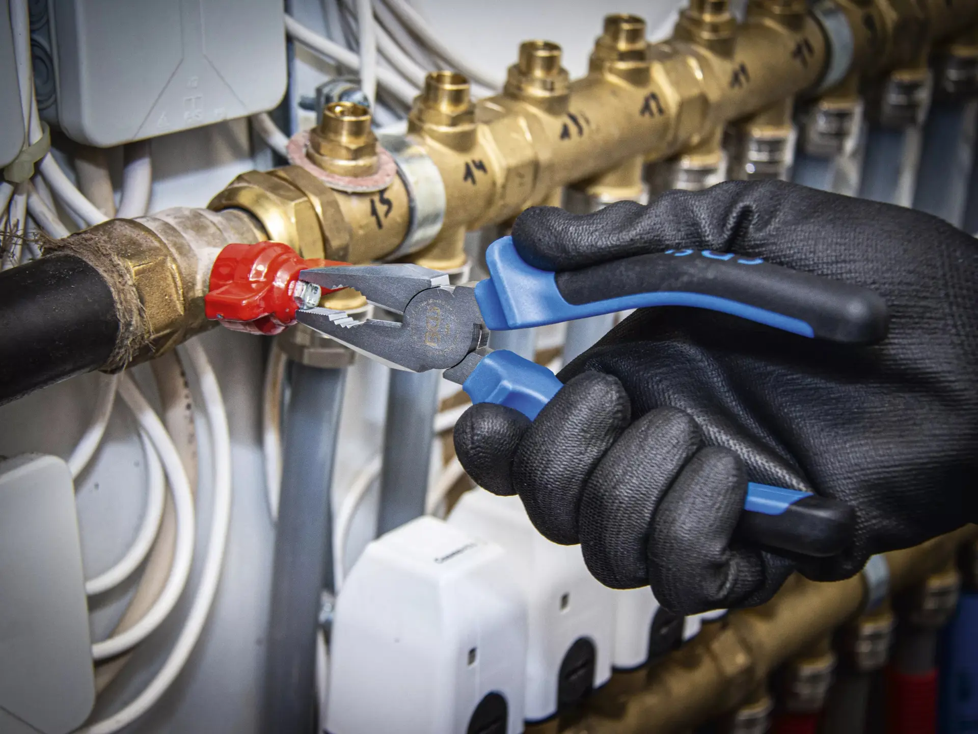 Kombinační kleště BGS100371 s délkou 200 mm mají dvoukomponentní izolaci pro pohodlný úchop a přesné zpracování různých materiálů při práci v dílně.