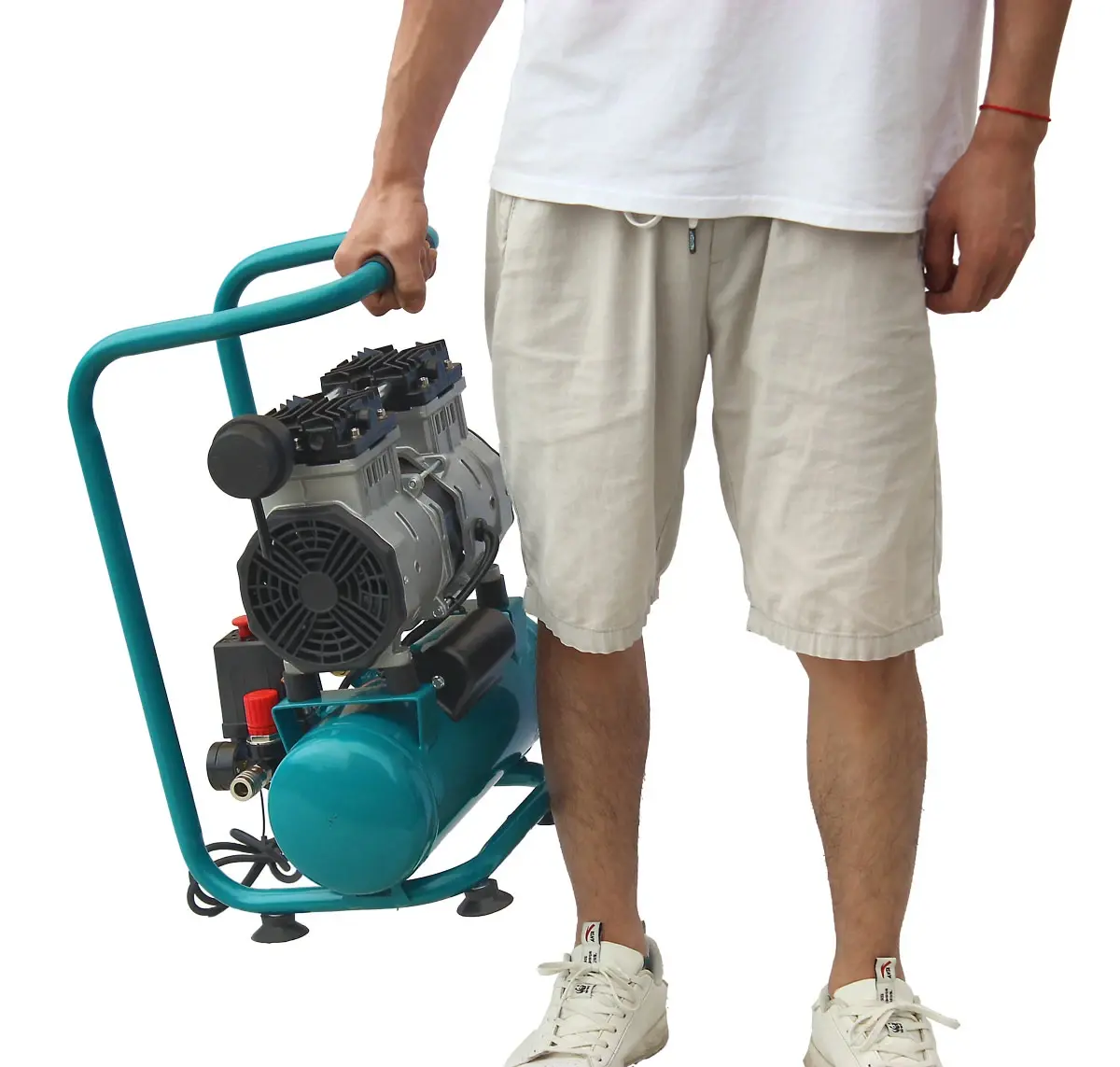 Kompresor je vybaven praktickým madlem a kolečky, což usnadňuje jeho přemísťování. Kompaktní rozměry umožňují snadné skladování i v omezených prostorech, takže nezabere mnoho místa v dílně ani v garáži.
