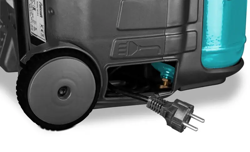 Součástí kompresoru jsou také gumová kolečka, která usnadňují transport i na nerovném povrchu. Díky bezolejovému provedení je vhodný i pro použití v prostředí, kde je kladen důraz na čistotu vzduchu, například při práci s laky nebo v potravinářství.