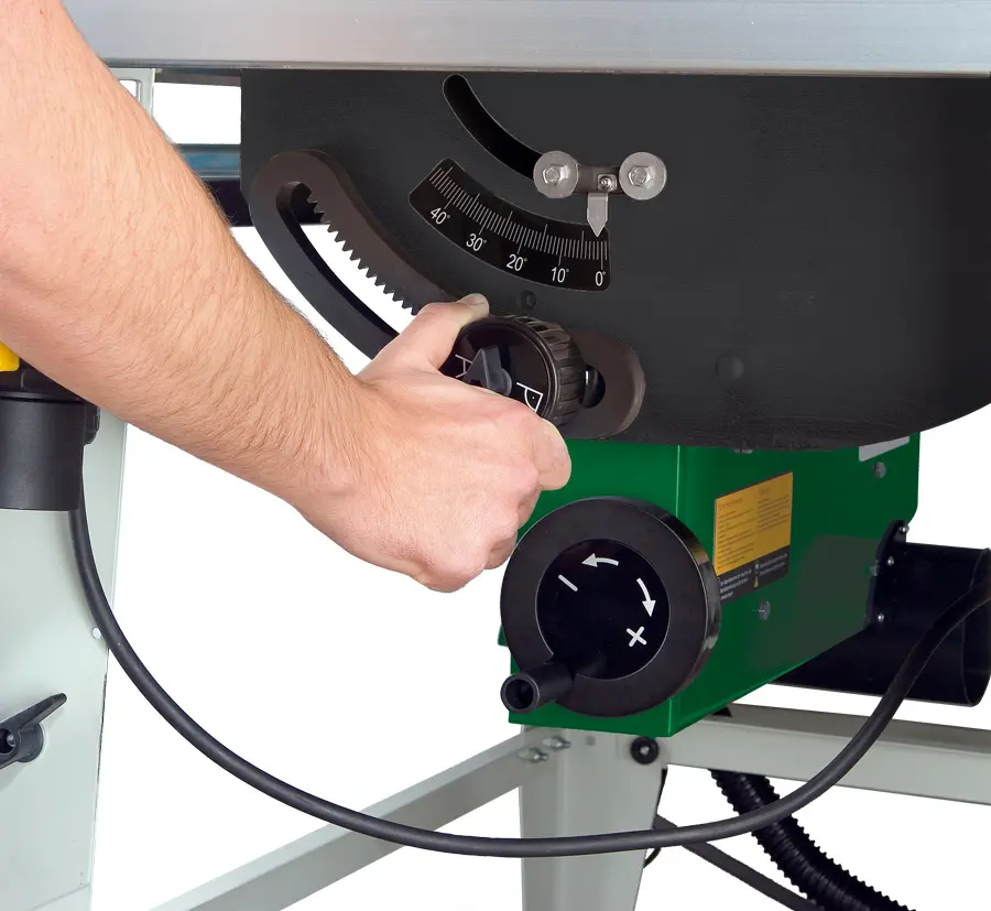 • Nastavení výšky pilového kotouče pomocí ručního kola