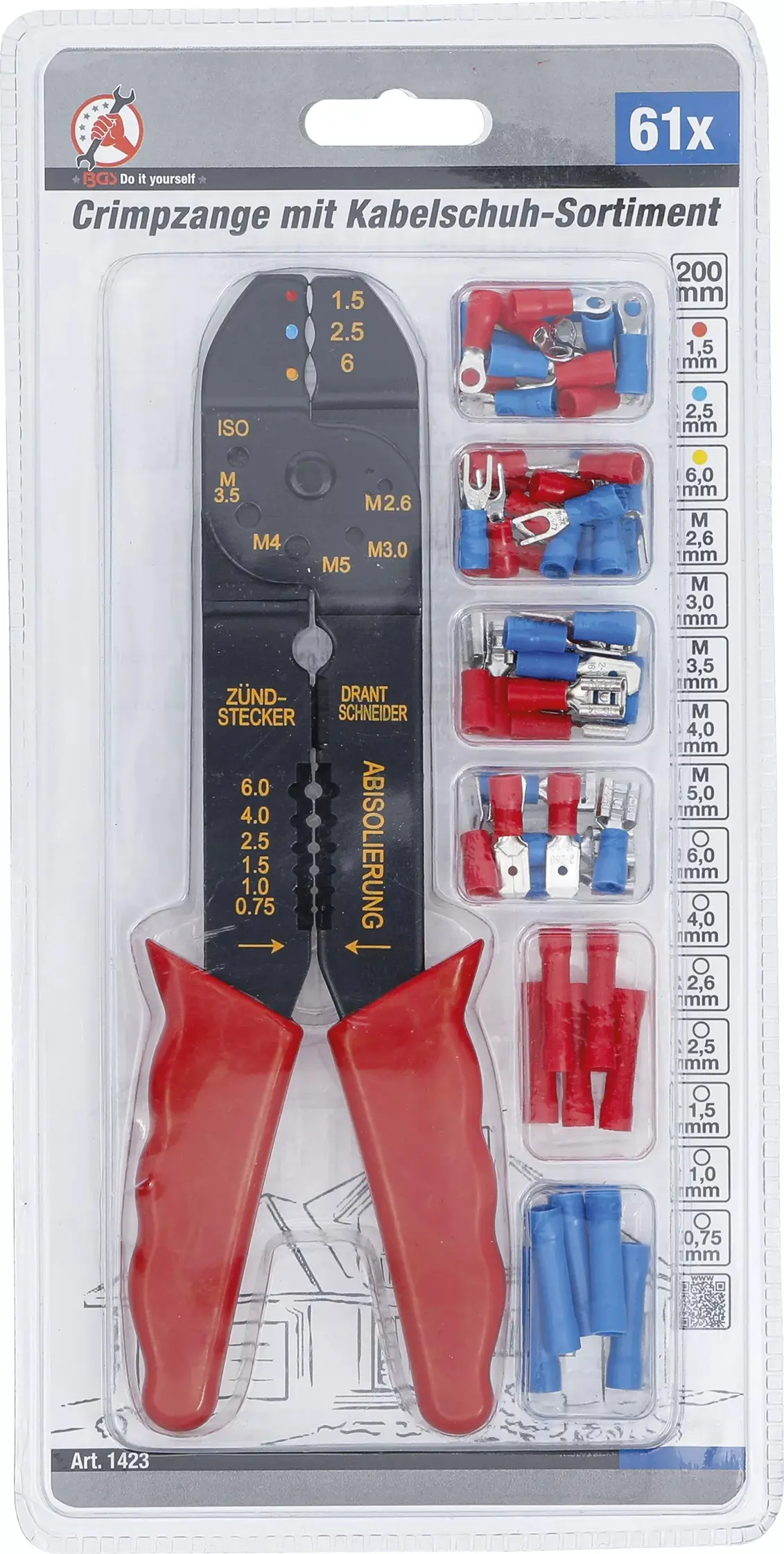 Krimpovací kleště Kraftmann 200 mm BGS101423 s kabelovými oky. Sada 61 ks (BGS101423)