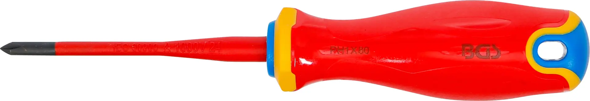 Izolovaný VDE šroubovák BGS technic s extra tenkým hrotem pro křížovou drážku PH 1 umožňuje práci v elektrických rozvodech do 1000 V a přístup do úzkých prostor. Ergonomická rukojeť zajišťuje pevný úchop při šroubování.
