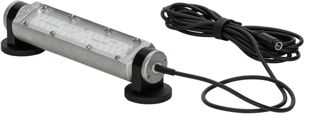 Provedení: Hliníková hlava svítidla se satinovaným akrylátovým sklem před LED světelným čipem. Hlavu svítidla lze otočit o 360°, Reflexní ramena osvětlení bez oslňování a problikávání. Magnetické patky s gumovým opláštěním pro přímou montáž na stroj. Ochrana proti prachu a stříkající vodě až po spojku napájecího zdroje.