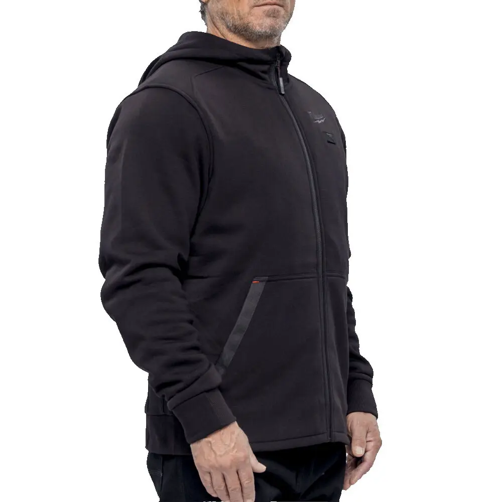 Odolná vyhřívaná mikina s kapucí z pevné bavlny (56 %) s vyztuženými užitkovými kapsami a vnitřní hřejivou fleecovou podšívkou z polyesteru (44 %) – navržená tak, aby obstála i v náročných venkovních podmínkách