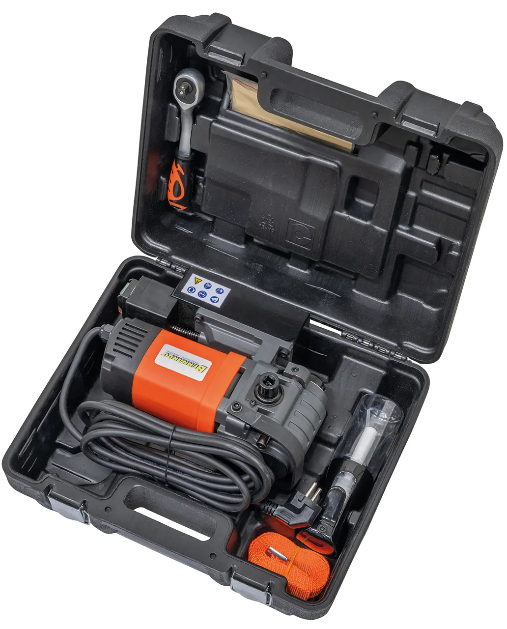 Magnetická vrtačka Bernardo s kompaktní konstrukcí, což znamená, že ve srovnání se standardními magnetickými jádrovými vrtačkami se model MD 3845 L vyznačuje menšími rozměry, což z něj činí nejlepší volbu pro práci v omezených prostorech.