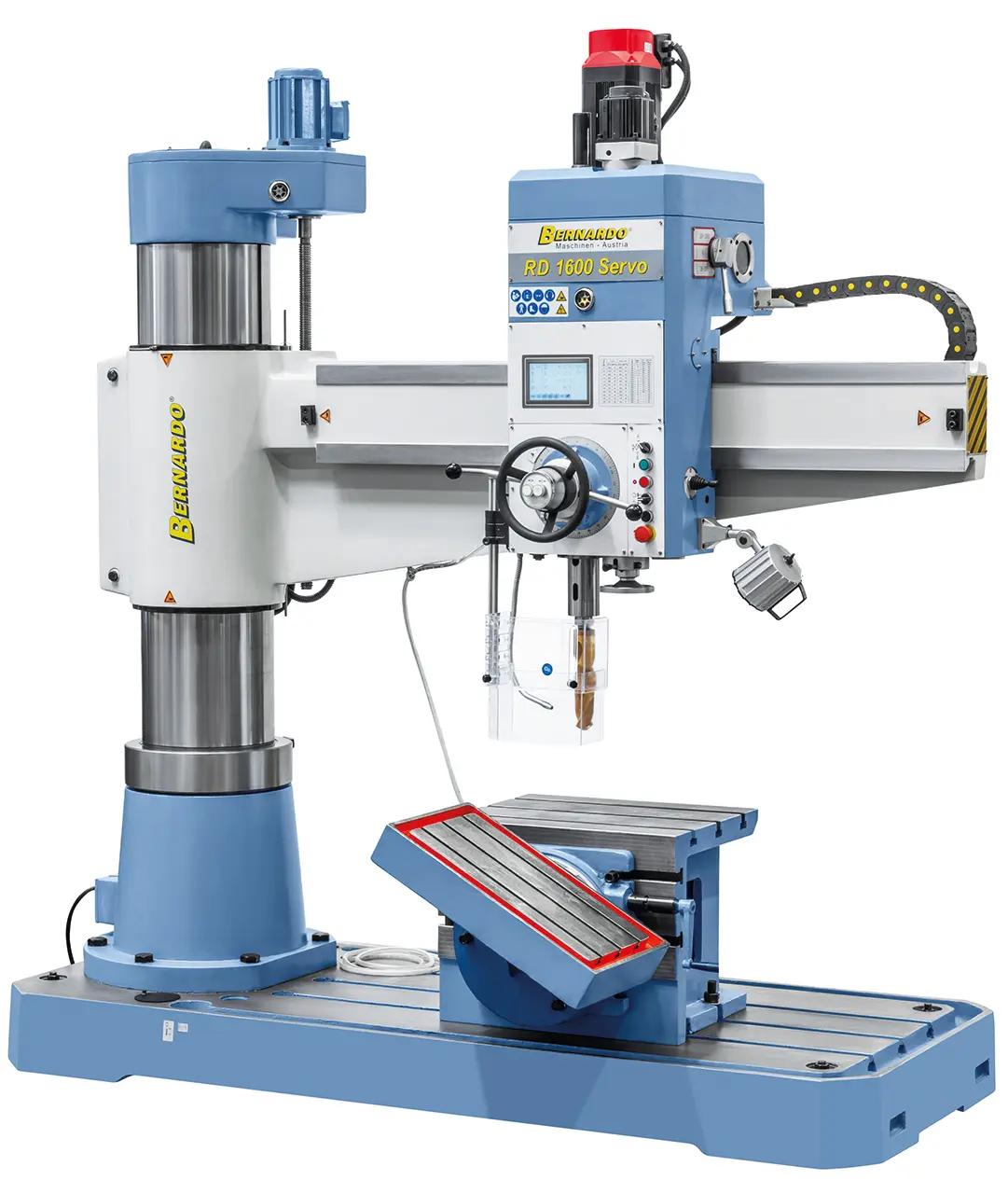 radiální vrtačka, 3,7 kW, 400 V, otáčky (2 st. - plynule) 20 ÷ 2000 U.min-1, vrták 50 mm, závitování M 45, vyložení 1600 mm, rozměry 2550 x 1100 x 2600 mm