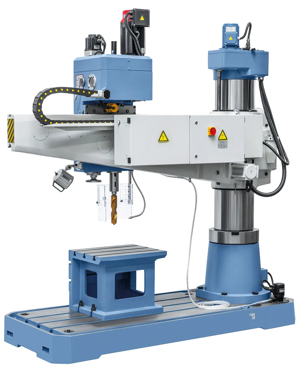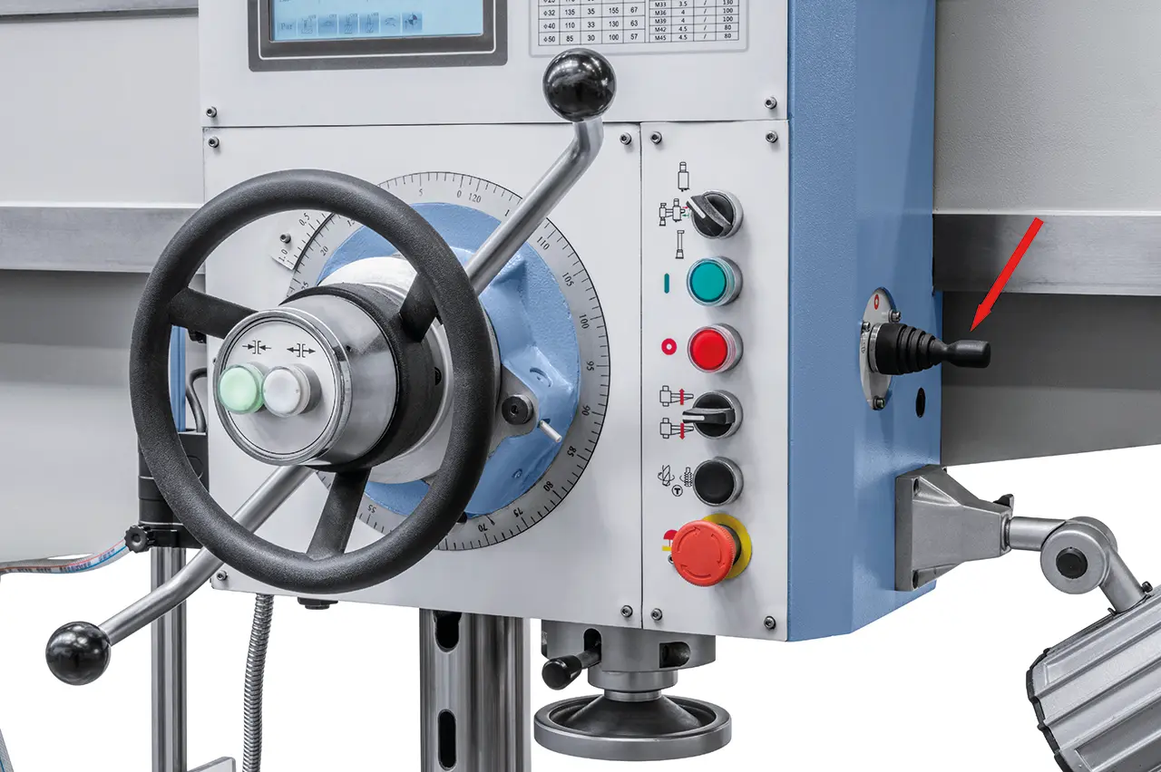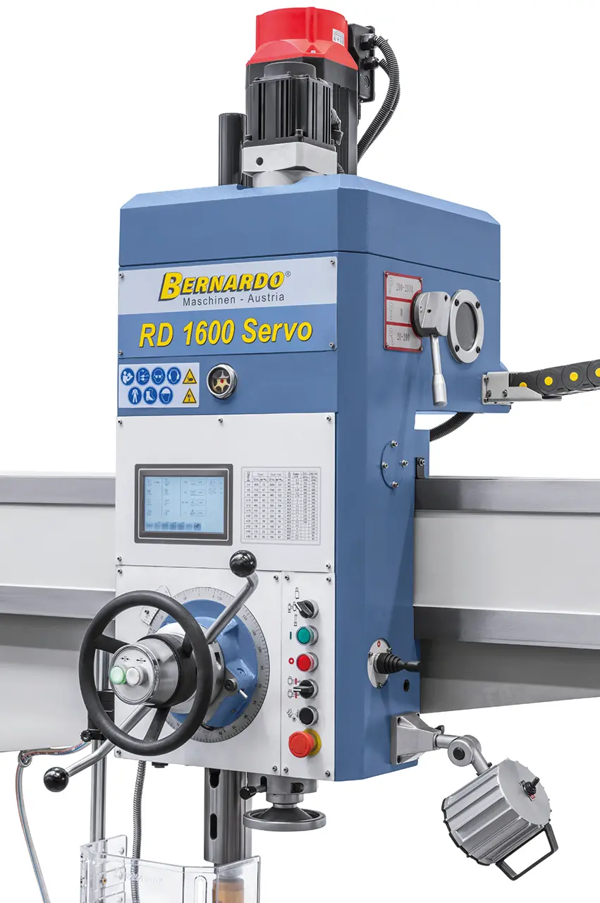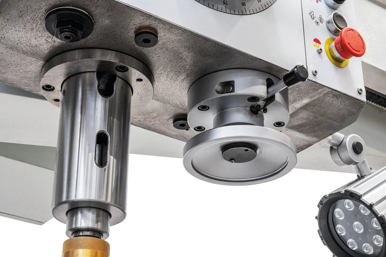 Snadné nastavení výšky ramene výložníku pomocí zdvihacího motoru, poloha vřetena zůstává nezměněna, ideální pro sériovou práci