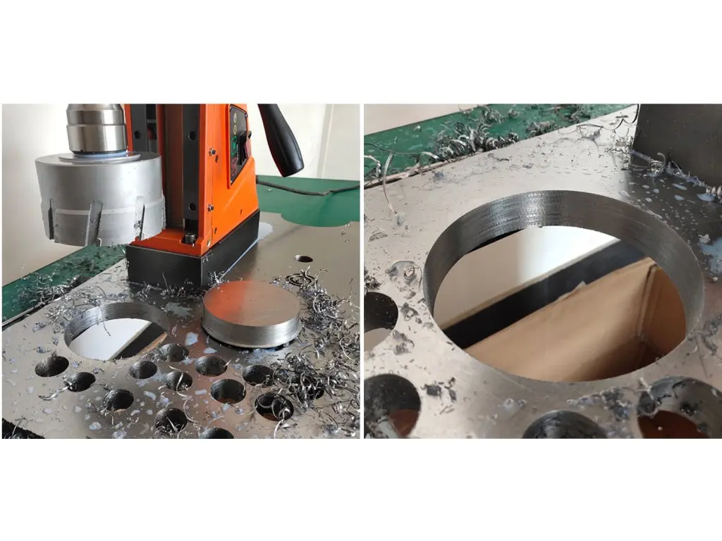 • Nadstandardní plocha magnetu spolu s rybinovým vedením a masivním stojanem zaručuje potřebnou stabilitu pro vrtání až do průměru 120 mm