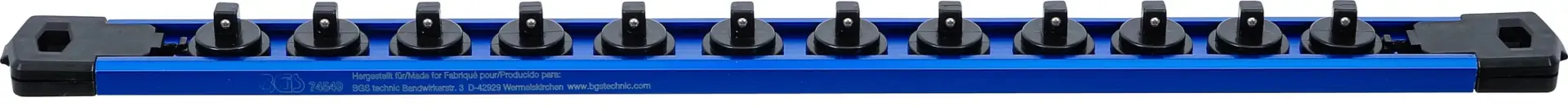 Magnetický držák pojme 12 hlavic s upínáním 1/4", zajišťuje jejich přehledné uložení a snadný přístup při práci v dílně nebo garáži. Robustní konstrukce a silný magnet drží hlavice bezpečně na místě.